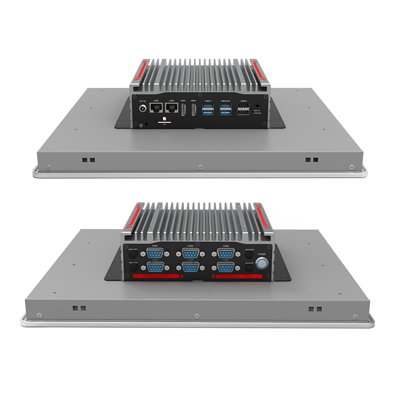 外觀設計:鋁合金一體成型,結構緊湊小巧,工藝精細,科技時尚低功耗:英特爾® 賽揚®J6412 板載處理器,TDP 10W穩定可靠:純工業設計,優良的散熱結構,全密封鋁合金箱體,大面積鋁鰭散熱,機箱可抗接觸式6KV強電磁干擾接口豐富:2*HDMI,2*LAN(Intel I225),6*COM,3*USB3.0,3*USB2.0,1*SIM槽,1*2.5寸硬盤位,1*音頻Line-Out+MIC二合一(OMTP國家標準),1*M.2(Key-M,2280,PCIE x2 NVME SDD),1*M.2(Key-B,3052,USB3.0+USB2.0支持4G、5G模塊),1*MPCIE(全高,PCIE+USB2.0,支持WIFI+BT/網卡),2*天線孔(WiFi與4G二選一)界面友好:純屏10點工規電容觸控,操作更便利