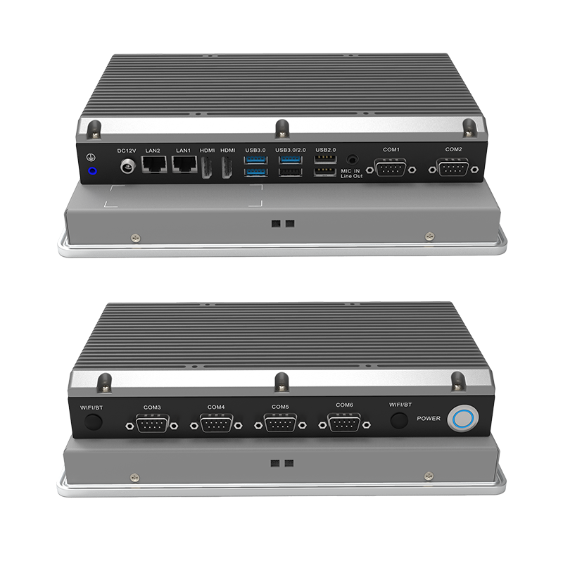 低功耗:英特爾® 賽揚® J6412 板載處理器,TDP 10W外觀設(shè)計:鋁合金一體成型,工藝精細,科技時尚穩(wěn)定可靠:純工業(yè)無風(fēng)扇設(shè)計,大面積鋁鰭散熱,箱體材質(zhì)可抗接觸式6Kv強電磁干擾;液晶屏接觸處加強型密封膠圈設(shè)計,面板防水防撞擊人機界面友好:純屏10點工規(guī)電容觸控,操作更便利接口豐富:2*LAN(Intel),6*COM,3*USB3.0,3*USB2.0,2*HDMI,1*M.2(KEY-M,2280,支持PCIE x2信號 NVME SDD),1*Mini PCIE(全高,PCIE+USB信號,支持WIFI/BT)