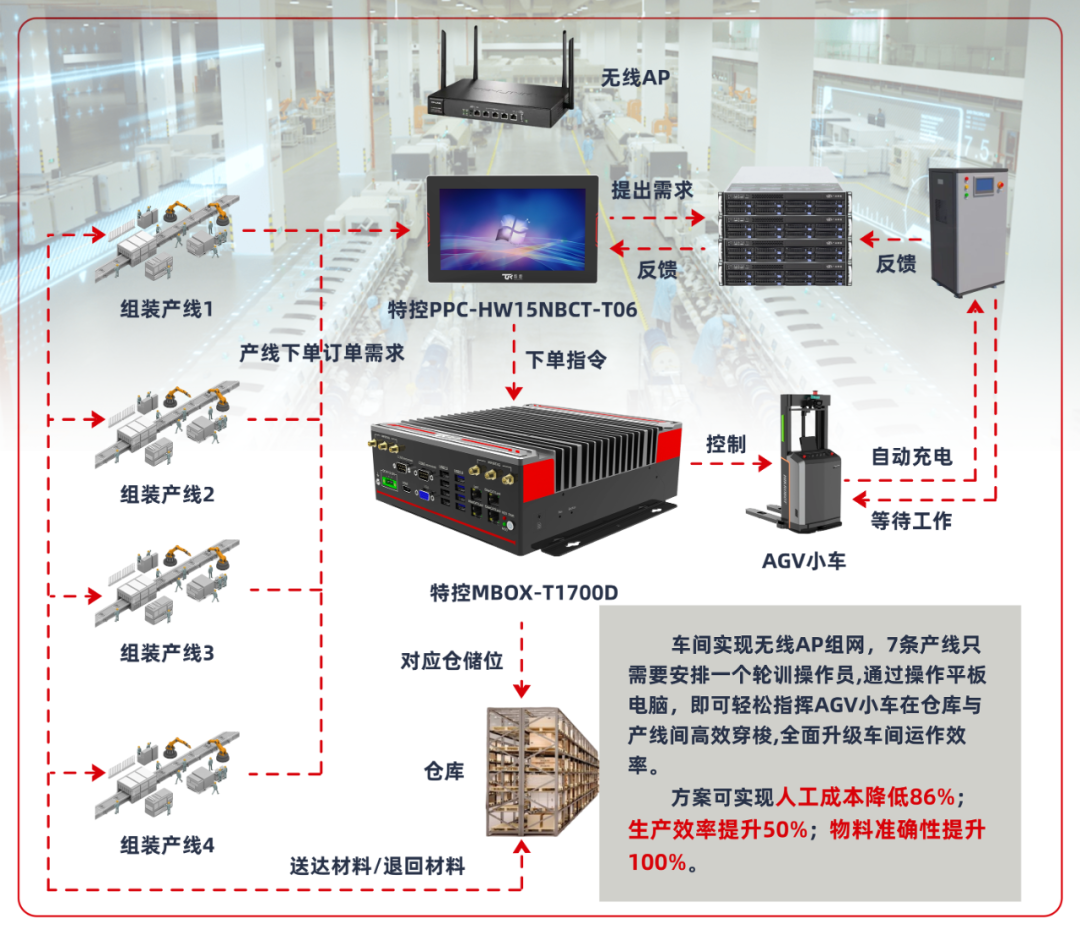 在日均處理百萬(wàn)件包裹的智能倉(cāng)庫(kù),特控邊緣計(jì)算設(shè)備與工業(yè)平板構(gòu)建起 “數(shù)字中樞”。MBOX-T1700D邊緣計(jì)算控制器化身 “智慧大腦”,通過(guò)毫秒級(jí)數(shù)據(jù)處理能力,實(shí)時(shí)分析包裹重量、尺寸與目的地信息,動(dòng)態(tài)規(guī)劃最優(yōu)分揀路徑。