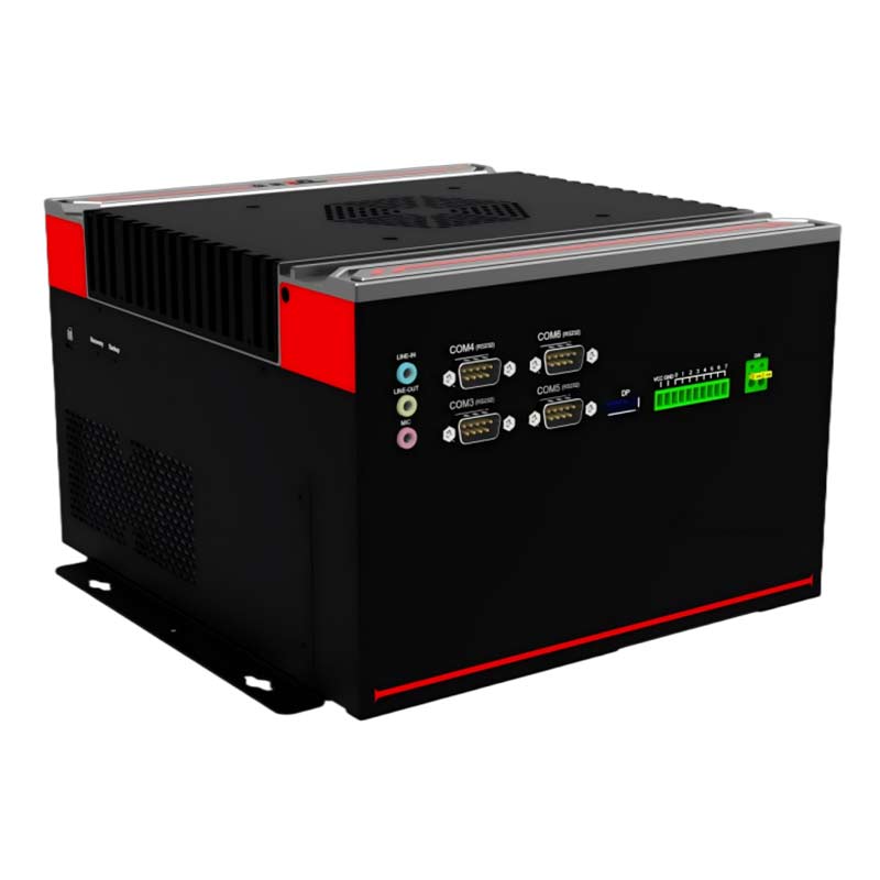 高性能 : 支持65W及以下6/7/8/9 代LGA1151 Intel Core i7/i5/i3 系列處理器穩定可靠 : 純工業設計,強勁解熱熱管與純銅一體化的優良散熱結構,全密封鋁合金箱體,大面積鋁鰭散熱,可實現橫向與豎向等多種放置的自然對流散熱,機箱可抗接觸式6KV強電磁干擾,DC12V-24V寬壓輸入接口豐富 : 4*LAN(Intel),6*COM,支持T-MOD模塊擴展,8*GPIO(4*USB2.0/2*RJ45/2*CAN/12DI+12DO三選一擴展),4*USB3.0+4*USB2.0,1*VGA,1*HDMI,1*DP、1*遠程開關,1*一鍵還原,1*一鍵備份,1*SIM槽,1*LINE IN,1*LINE OUT,1*MIC,1*2.5寸硬盤位,1*M.2(KEY-M,2280,PCIEx4 支持SATA) , 1*M.2( KEY-B,3042/3052, PCIE+USB3.0支 持 4G/5G) , 1*MINI PCIE( 全 高 ,PCIE+USB2.0信號),1*PCIEx16,1*PCIEx4,6*天線孔外觀設計 : 鋁合金一體成型,結構緊湊,MiNi小巧,工藝精細,科技時尚